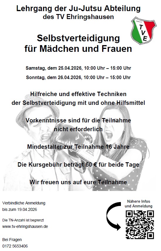 Am 25. und 26.04.2026 findet ein Frauen-SV-Kurs der Ju-Jutsu Abteilung